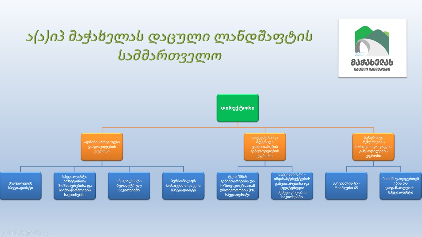 გ) შექმნას მაჭახელას დაცული ლანდშაფტის მართვის სისტემა;